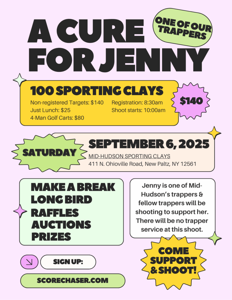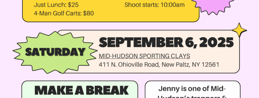 Jenny is one of Mid-Hudson’s trappers & fellow trappers will be shooting to support her. There will be no trapper service at this shoot.